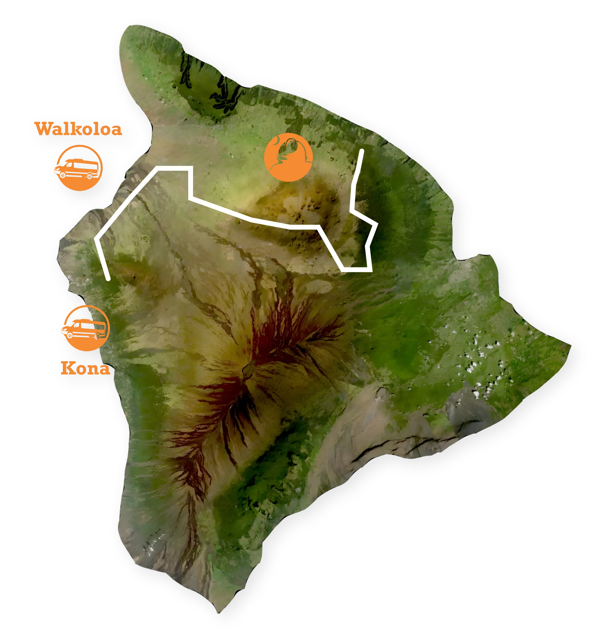 Our Giveback trips depart on Wednesdays from the King Kamehameha Courtyard Marriott in Kailua-Kona, Queen’s Marketplace in Waikoloa Beach Resort, and the Waikoloa Plaza in Waikoloa Village. 8- 9 hours round trip.