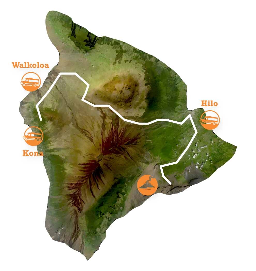10:30 AM – Arrive Hilo Airport for brief courtesy rest stop